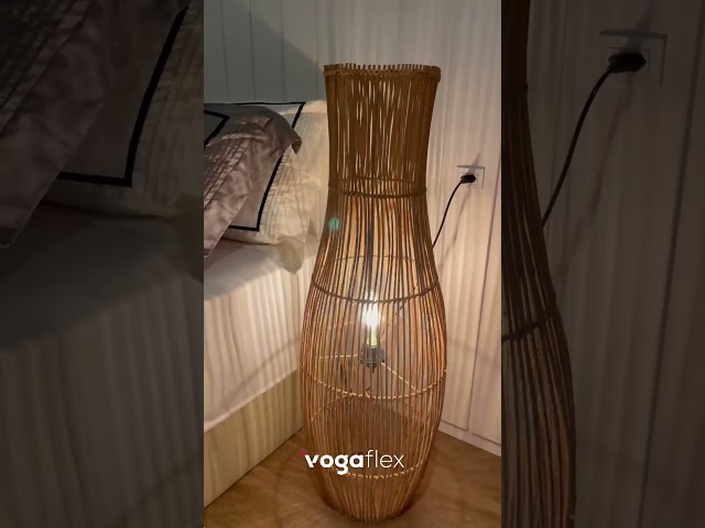 A Luminária de Chão em Rattan Kalani impressiona pelo equilíbrio entre leveza e presença.