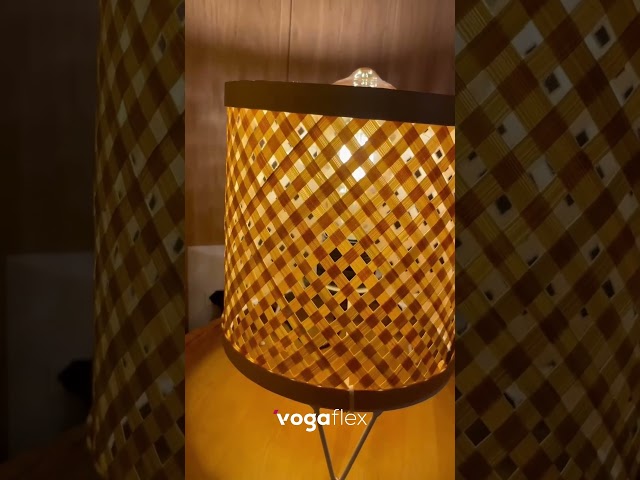 Produzida artesanalmente por artesãos vietnamitas, cada peça é tecida com precisão e cuidado, formando uma trama cruzada que filtra a luz de forma suave e aconchegante. A estrutura cilíndrica, elevada por pés metálicos delicados, oferece leveza visual sem perder presença.